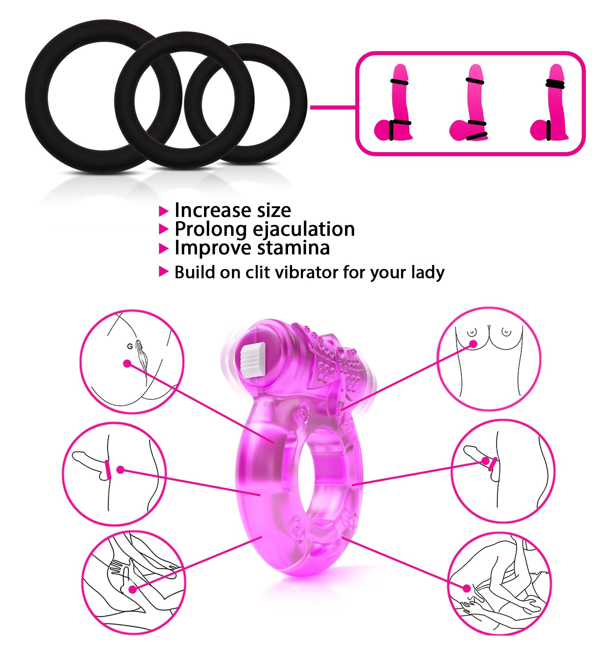 "Got these for my boyfriend and I to try. I like the rings more than the vibrating ring. Glad it came as a set so we could try them all!"